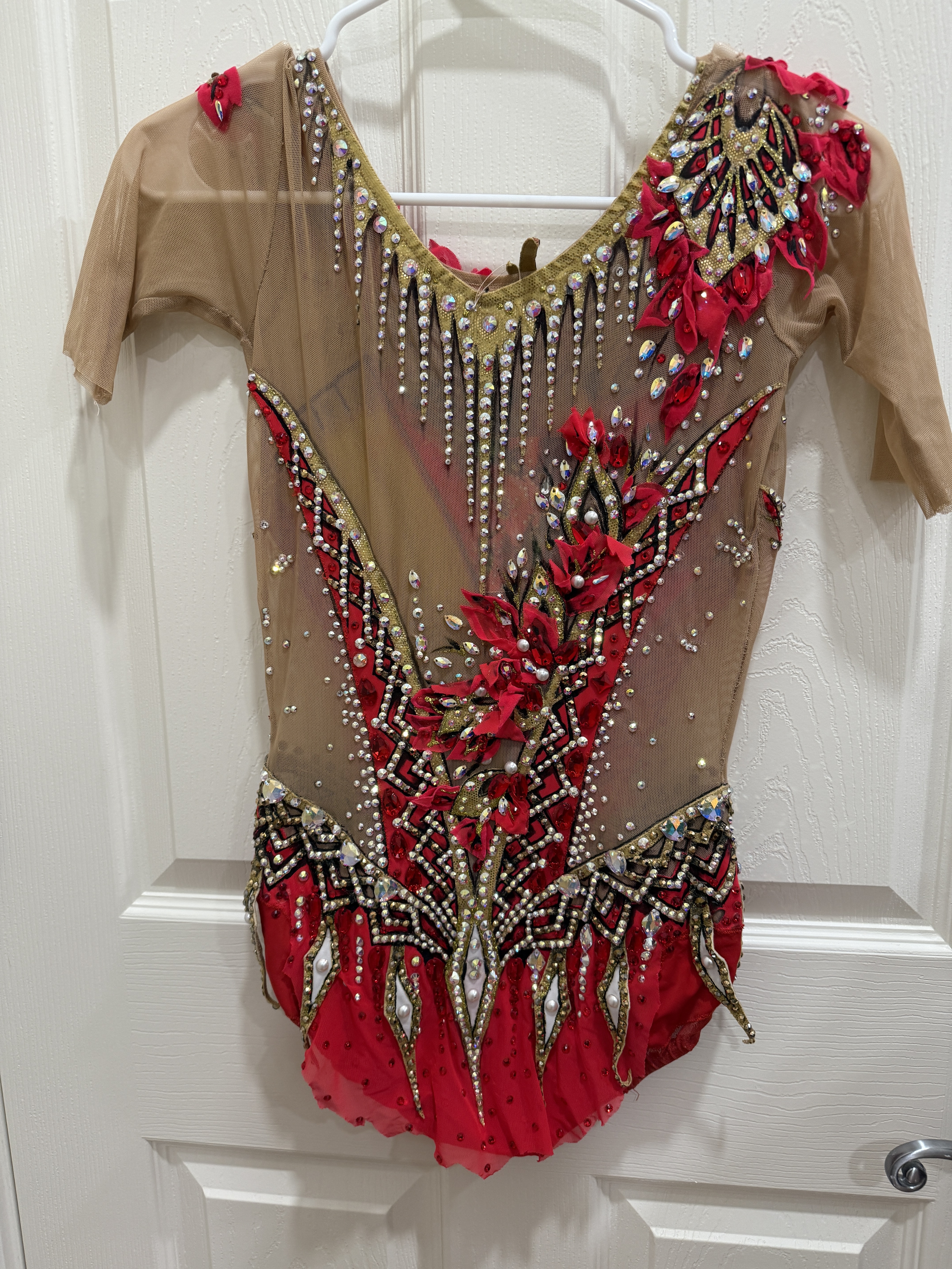 Xcel bronze, Silver, gold, Platinum Deep red rhythmic gymnastics leotard