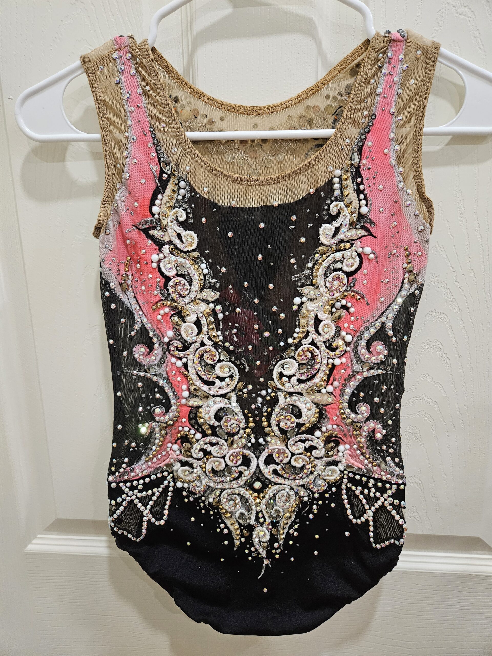 New rules, L6-8 pink/black rhythmic gymnastics leotard. Please email me before placing an order: championleotards@gmail.com