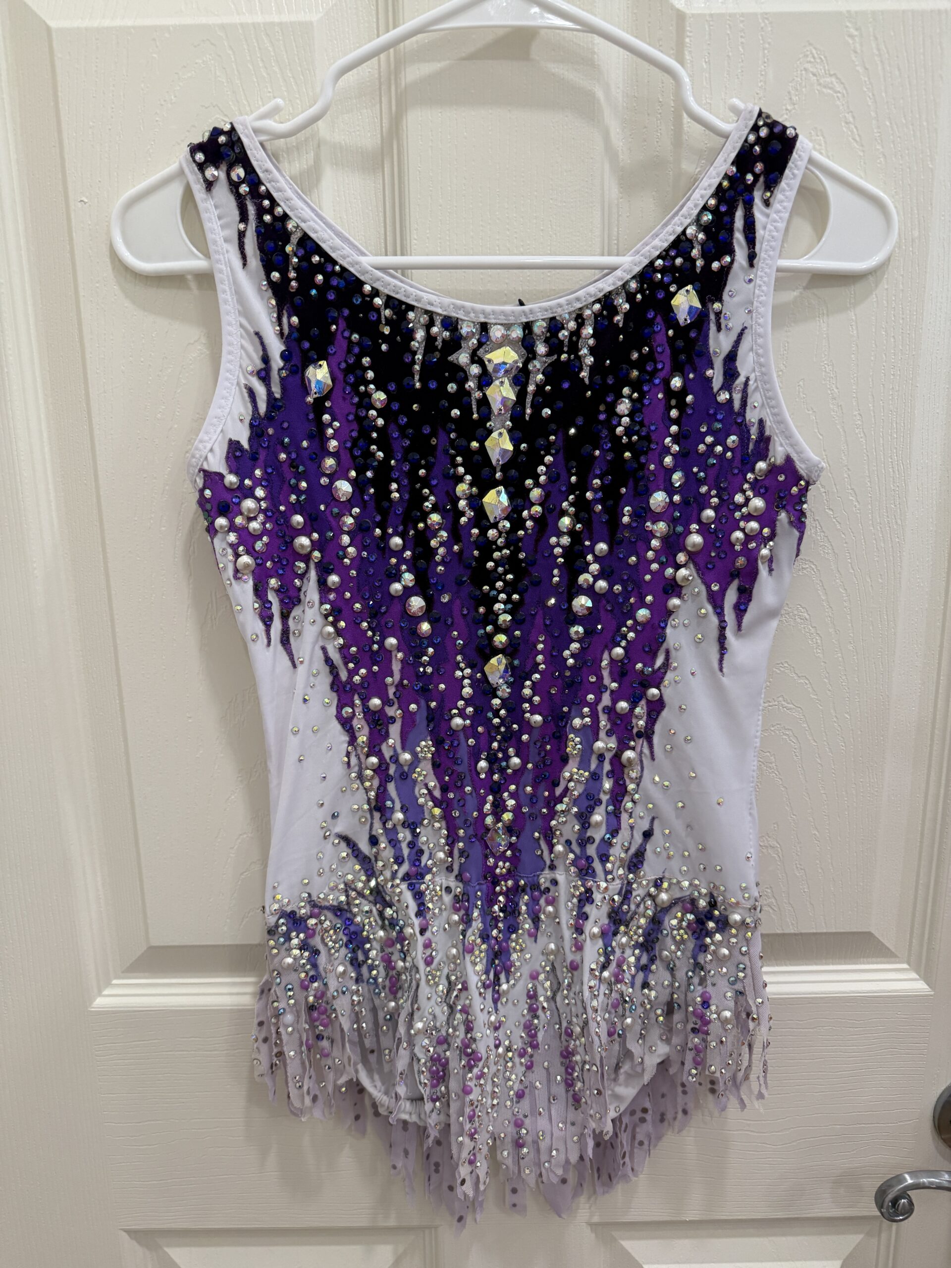 New rules no mesh purple/white rhythmic gymnastics leotard. Please email me before placing an order: championleotards@gmail.com