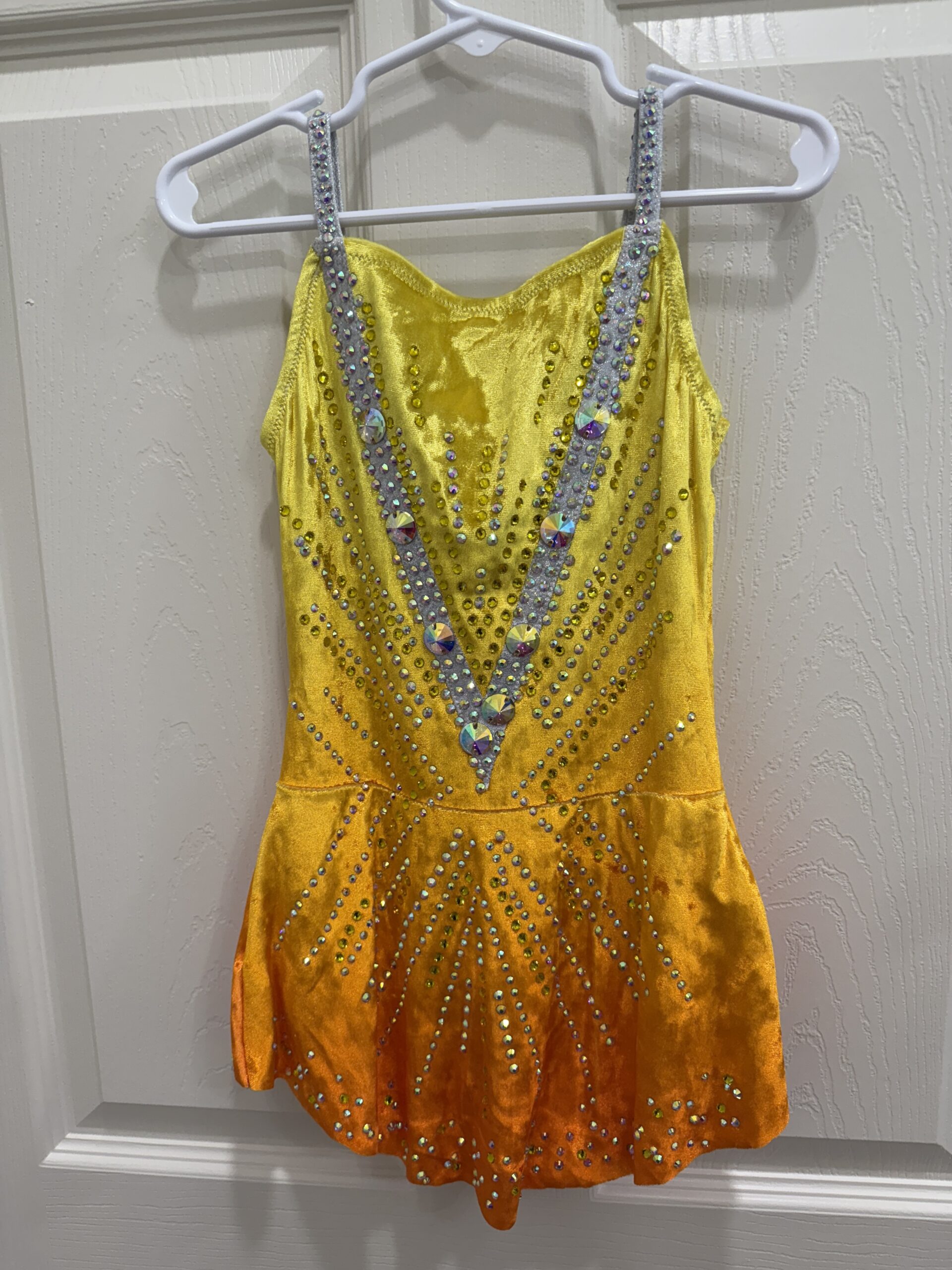 New rules no mesh velvet orange/yellow rhythmic gymnastics leotard.