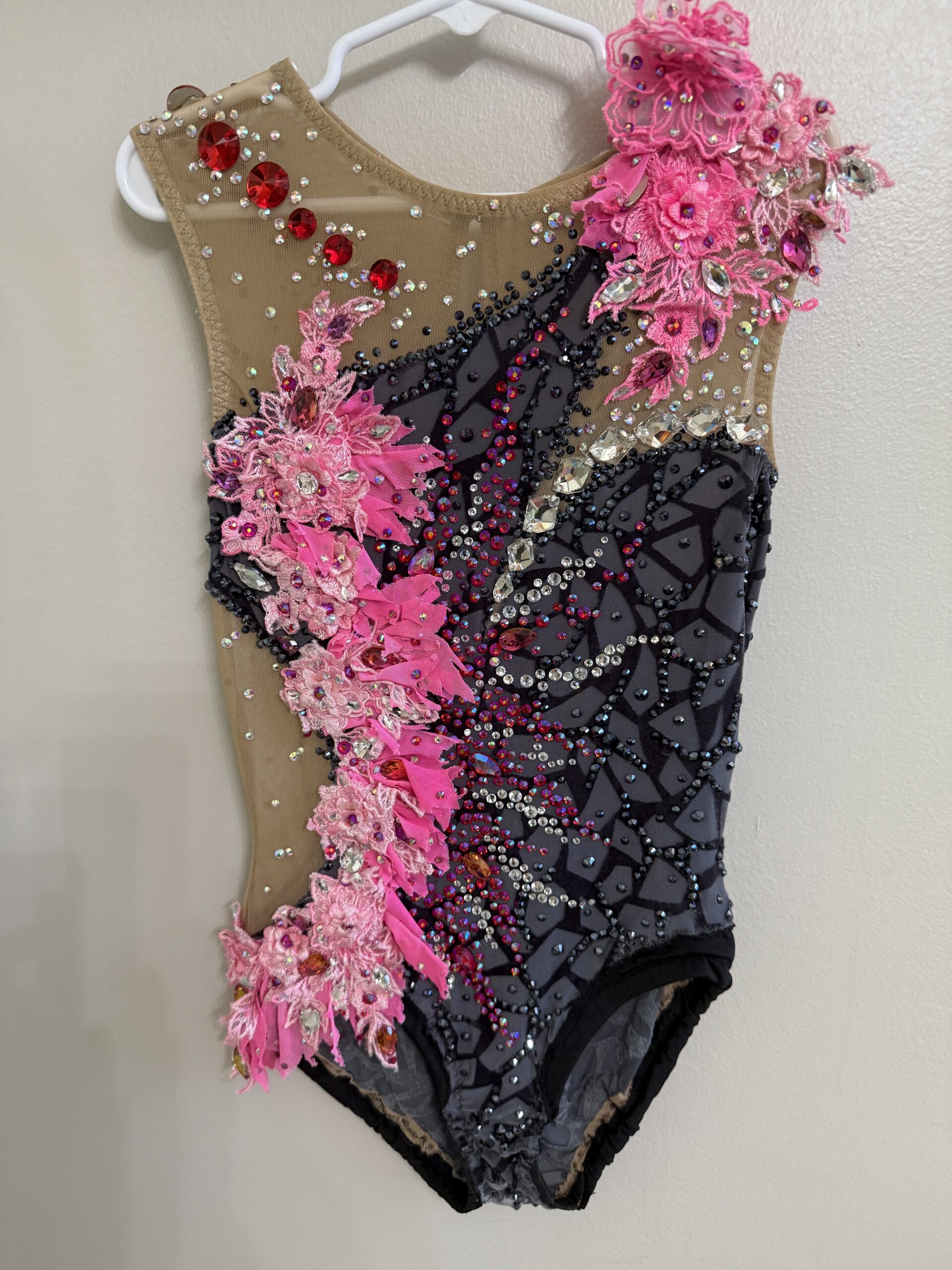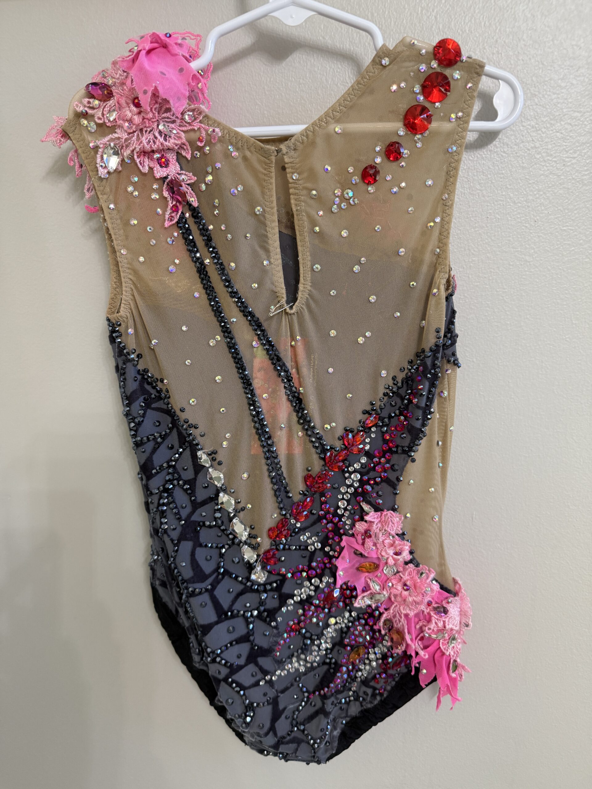 Xcel level, FIG level pink/gray rhythmic gymnastics leotard. Please email me before placing an order: championleotards@gmail.com